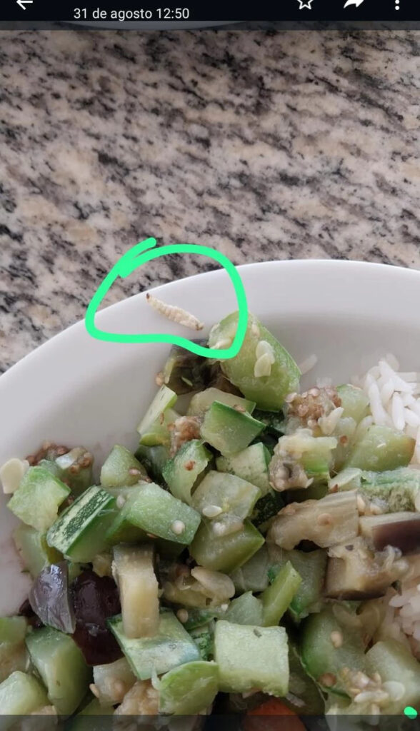 Larva em um dos pratos de estudantes da UFMA de Imperatriz. (Foto: Reprodução/Redes Sociais)