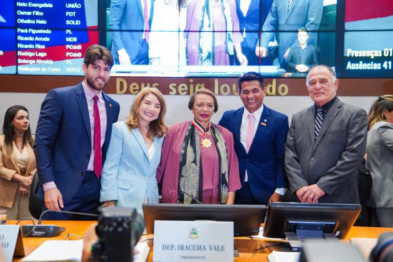[17/05, 12:18] normamlopes55: Estas mulheres homenageadas são exemplos de competência, que constroem com sensibilidade e que fazem da sua trajetória um serviço comprometido com quem mais precisa, são mulheres que não esperaram por lugar, elas ocuparam, transformaram e deixam suas marcas. E é com muito orgulho, como presidente dessa Casa, que tive a honra de propor homenagens a algumas dessas mulheres aqui hoje”, destacou a deputada Iracema Vale, referindo-se a Luiza Waquin, Ângela Silva e Maria dos Remédios Freitas. A parlamentar também propôs a Medalha Manuel Beckman à primeira-dama do Estado, Larissa Brandão, que não pôde comparecer ao ato.