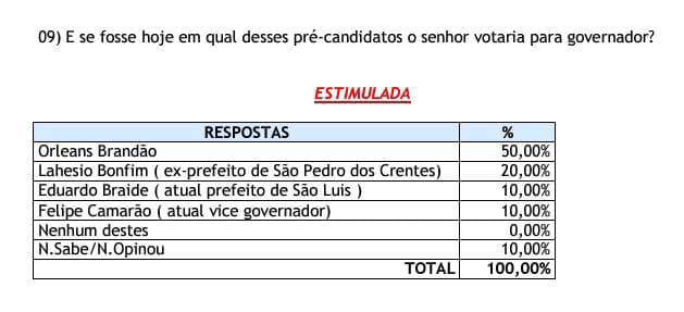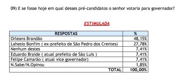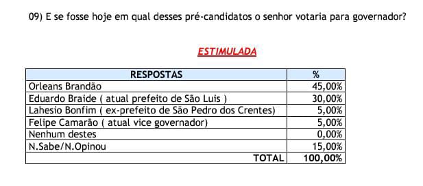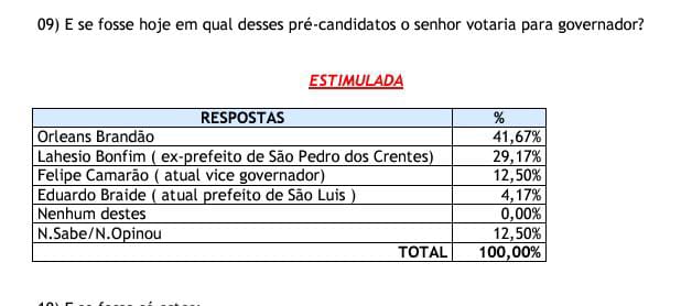 Tuntum – Orleans Brandão lidera pesquisa para o governo do Estado