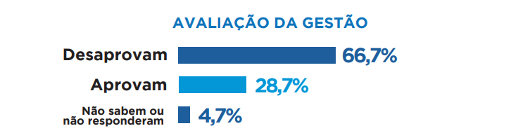 Sobre a AVALIAÇÃO DA GESTÃO do prefeito do município, Amílcar Rocha, 66,7% dos entrevistados desaprovam e 28,7% aprovam; já 4,7% não souberam ou não responderam.